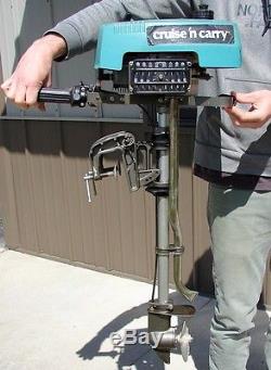 Скользящая подвеска позволяет устанавливать «Аква Баг» на транце любой высоты, поднимать мотор выше при прохождении мелководья. При испытании на стенде этот мотор с рабочим объемом 22 см3 развил мощность 1,2 л. с. при 5000 об/мин. Конечно, «Аква Баг» пригоден для применения лишь на самых маленьких судах — байдарках и каноэ, малых надувных лодках; нередко его используют в качестве вспомогательного двигателя на небольших парусниках. Основную часть покупателей составляют охотники и рыболовы, промышляющие на малых реках и озерах.