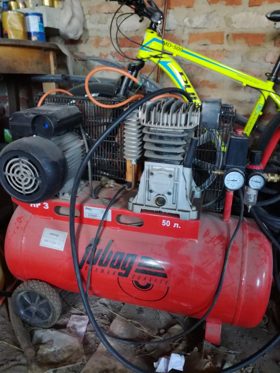 Блокировка работает, пока не нажмешь, не стучит. Мне нравятся ваши рассуждения, но вероятно мы с вами в разных магазинах бываем, я например не встречал компрессоры, кроме автомобильных, а возможно не обращал внимания, без ресиверов. Нет, у меня не супер-пупер компрессор, простой, двиг что-то то ли 1,1 то ли 2 квт. + ременная передача на одноцилиндровый компрессор, ресивер под ним на 50 литров, но думаю надо поставить еще, и регулятор и фильтры стоят, как без автоматики? Вот компрессор, и свободный от обязательств баллон газовый. Думаю его приспособить.