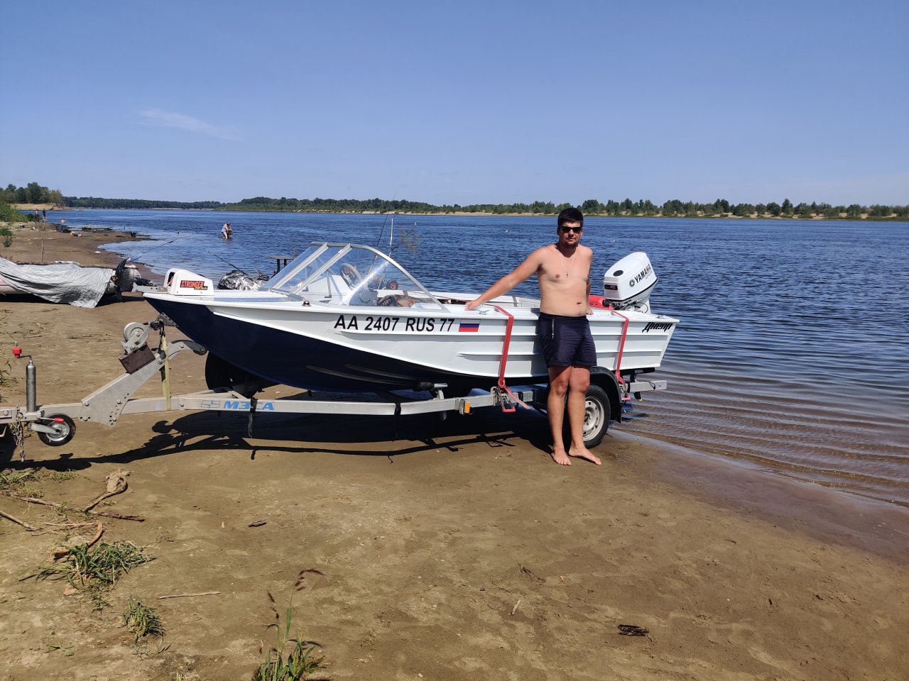 Летом гоняли два Днепра: мой, тяжёлый с реданами и лебедем на носу и стоковый. Моторы практически одинаковы, винт меняли и по очереди делали заезды. Стоковый Днепр высоко выскакивает из воды и идёт значительно выше задрав нос. При этом он более нервозен, приходится постоянно подруливать, а скорость всего на 2 кмч выше. Мой идёт как по рельсам и стоит с ощутимо меньшим дифферентом на корму. Развесовка у него другая.