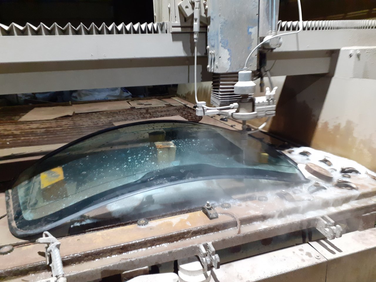 P.S. Попытка решить вопрос с триплексом без значительных вложений в изготовление самой матрицы - гидрообразивная резка б/у стекла. Режет прекрасно, но нужна хорошая подставка (постель по размеру) под само стекло в местах реза.