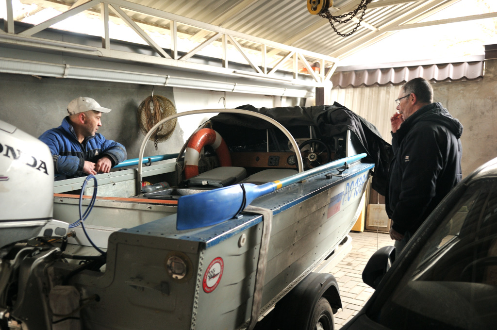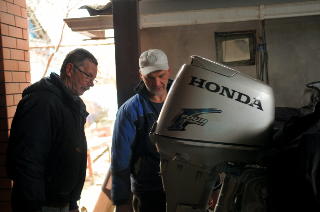 Приветствую всех! Как и намеревался, откликнувшись на заманчивое для меня предложение Андрея (под ником Чис-Айна), в воскресенье выехал в славный город Ростов-на-Дону. Семья (супруга и сын-студент) категорично заявив, что в одно лицо меня не отпустят, стремительно собрались и расселись по местам в автомобиле, прилипнув прямо к сиденьям. Особо не протестуя, ключ на старт и в дорогу. Приехали в Ростов около 13 часов, по навигатору сориентировались в большом городе, подъехали на место. Хозяин дома, приятной внешности мужчина, крепкий, сбитый, деловой, вышел нам навстречу, открыл ворота и мы въехали под навес перед капитальным гаражом. Справа от нас стояла на прицепе, блестя светлыми бортами, его великолепная лодка, естественно под чехлом, справа старенький микроавтобус-работяга. Вышли, познакомились, разговорились о том, о сем... В процессе разговоров Андрей предъявил огромного вида лодочный мотор (я не ожидал таких размеров, раньше их не видел никогда). Мы перенесли его в багажник моего автомобиля, он занял почти все место. "Может второй заберете, 25 сильный?" - спросил он... - "К нему тоже есть кое какие железяки, только он без документов.." Был порыв, не скрою, внутренний такой, думаю - может и вправду - валетом в багажник.. Затем обуздал свои мысли , устыдился аж своей жадности.. Думаю, тебе старый хрыч и так сделали доброе дело, жадность фраера сгубит.. Нет говорю, хватит Андрей, надо с этим разобраться. Все, знаете, я уже был счастлив... зачем мне два счастья? Однако этим все не закончилось... По доброте душевной он снабдил меня различными принадлежностями к этому мотору, полмешка разных узлов и механизмов, кроме него винтов для мотора несколько штук, ручные стартеры, и что немаловажно - несколько новых пластин дюраля разных размеров для заплаток на лодку. Затем проходя мимо стоящих у него в обрезе алюминиевых уголков, остановился, спрашивает уголки надо? Говорю, да есть в лодке пара-тройка сгнивших, - с полуслова меня понял, где и какие - набрал охапку и передал мне. Далее мы обсудили документы на мою лодку и он показал нам свою... что могу сказать? ВПЕЧАТЛЕН! ХОРОША!! Мотор Хонда 4 тактный 30 л.с. еще больше по размеру Вихря. Лодка его в превосходном состоянии! Все в ней предусмотрено, эргономично, надежно. На мои расспросы о рыбалке, необходимости ему лодки он показал в телефоне свои уловы. Знаете - впечатлил! Он настоящий рыбак! Там такие уловы, такие размеры... я в реках и вообще в жизни пресноводных рыб больше 20-25 сантиметров никогда не видел, а у него на фото - кабаны водяные... Сын с супругой до сих пор мне напоминают, спрашивают - а как он их ловил, а как на борт затаскивал? На что я впервые даю им ответ - НЕЗНАЮ!