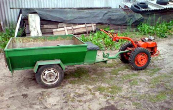 Вот на таком. Все заводское и сам мотоблок и прицеп.
