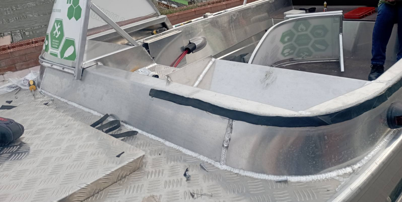 ), первый слой проложил до конца рамки, второй до бокового сгиба +10 см, третий до сгиба, клеил на обычный "Момент", ну и установка стекла минус оцинковка - крепил на нержу винты М4х20 с самоконтрящимися гайками. Крепить не просто, места под консолью кот наплакал, все впритык, но вдвоем справились за полдня с перекурами. Крайние и центральные саморезы 40 мм так же под замену на нержу, ну а в остальном, ничего не поломалось в процессе, стекло на месте, можно приступать к тенту! По большому счету, за что заплатил - то и получил, лодка = конструктор "доделай сам"!!! Важно - стекло начинать ставить от калитки-центра к краям!
