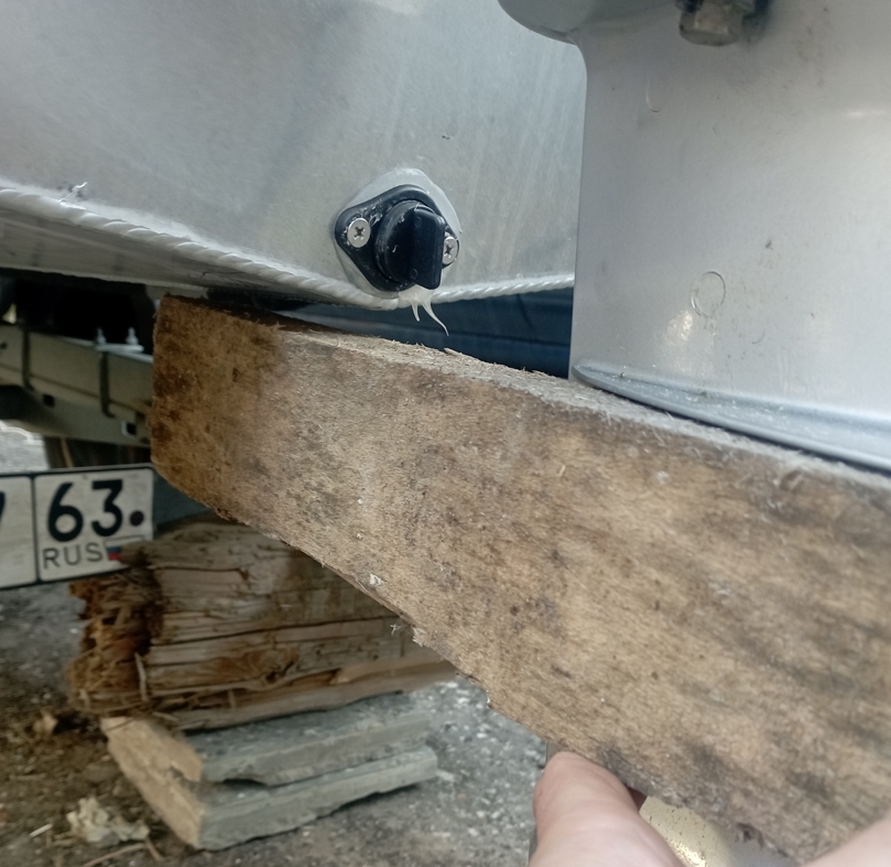 Есть такое, это вторая дырка, на третьей получается нос задран и прохваты, надо видимо шайбочки подложить между транцем и струбциной, дабы вровень стояло! Приятные хлопоты продолжаются!твой мотор поджат к лодке!