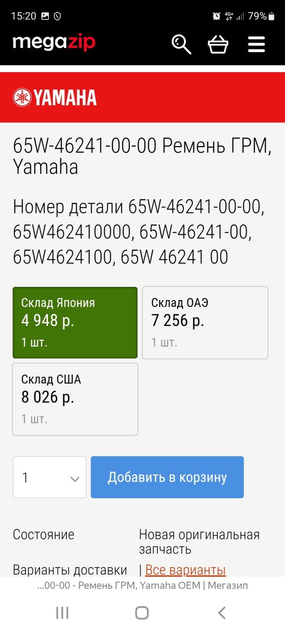 Спасибо Андрею муре, за покупку и отправку мне ремня ГРМ на ямашу.