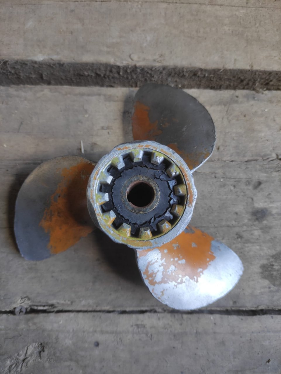 Винт што слева-покоцаный сильно,да к тому же очень похоже,что от 12-го Ветра.Привести лопасти в порядок,и чуть скруглить верхи лопастей.И будет хороший скоростной.Для легкой лодки,в одного.