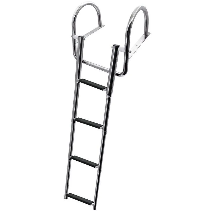 Делаю как мне удобней,зная лодку,зная рсстояние,зная сколько от мойго веса притопится вскарабкиваясь на нос с воды,была китай лесница ,на проге, телескоп , с плоскими ступеньками, знаю как себя вела, знаю как было удобно,знаю касяки её, я ее ставил и я по ней ползал