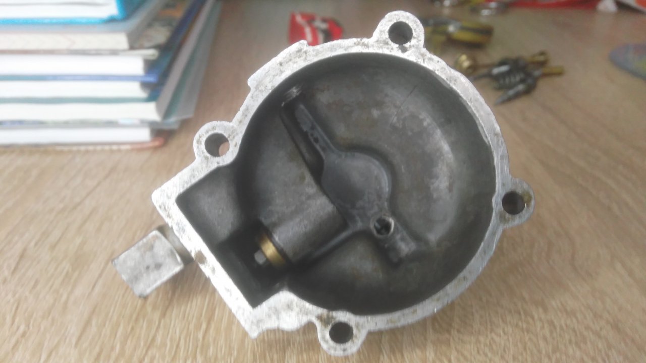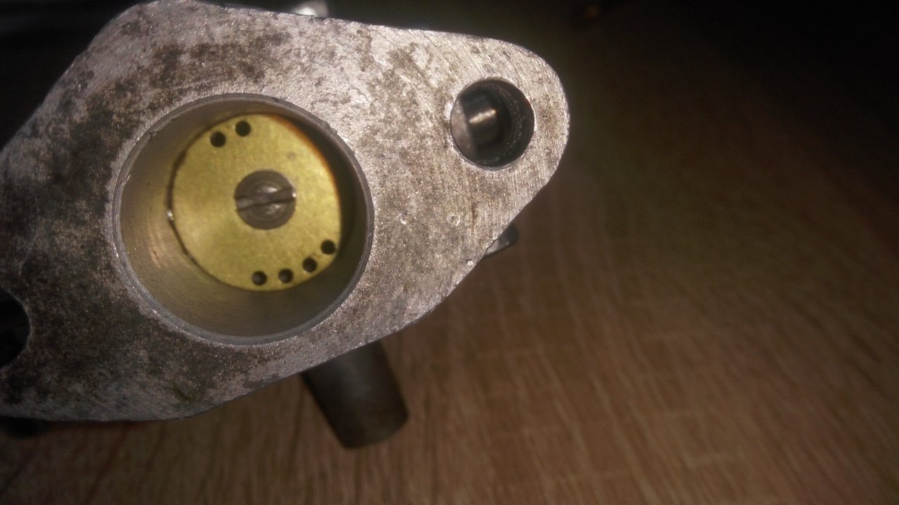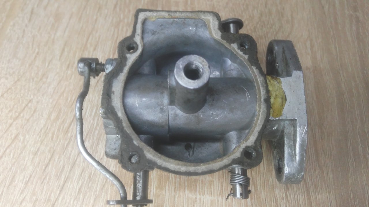 Вот мой карбюратор в разобранном виде. Отмечу что винт регулировки холостого хода был просто винтом без иглы, отпилена предыдущим хозяином, нашёл ветерковскую и сней ещё не пробовал. Далее, игла ГТЖ имеет чуть чуть погнутость по стержню. И посадочное место ГТЖ какое-то странное, а может и обычное. Поплавок целый. Скажу честно что уж и не думал что дело может быть в карбе и думал что чихание и работа хреновая нижнего цилиндра это все что угодно но не карб. Вчера заметил что если в какой-то степени выкрутить винт холостого хода (который у меня спилен и без иглы и постоянно заглушает подачу воздуха) то начинается дёрганье и чихание. Попытался крутить ЖХХ и одновременно ГТЖ и даже добился более менее работы нижнего цилиндра с циханием и дёрганье, но все же он работать начал и свеча стала не такой засраной. Подскажите как тут пишут “куда копать"?
