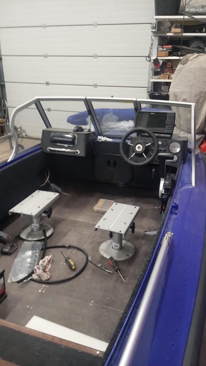 Позвонил я товарищу в Кострому. Ему на Лодки 44 вот такие консоли, стекло сделали. У 6 шпангоута стойки поставили (как Адмирал и танкист говорили. Говорит что его лодка едет от 47-50 зависимости по/против течения. Транец выносной он поставил в качестве подъема мотора и трима. Вообщем доволен как слон. Завтра лодку он забирает, будут еще фото.