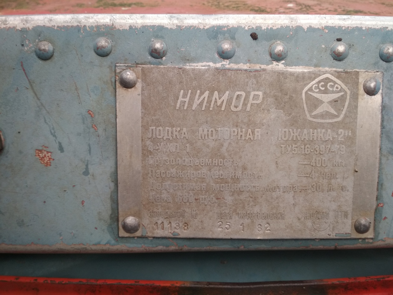 Ответ: размер шильда лодки южанка 2 производства 09.1980 120х95 мм. в закрепе корел и бмп.