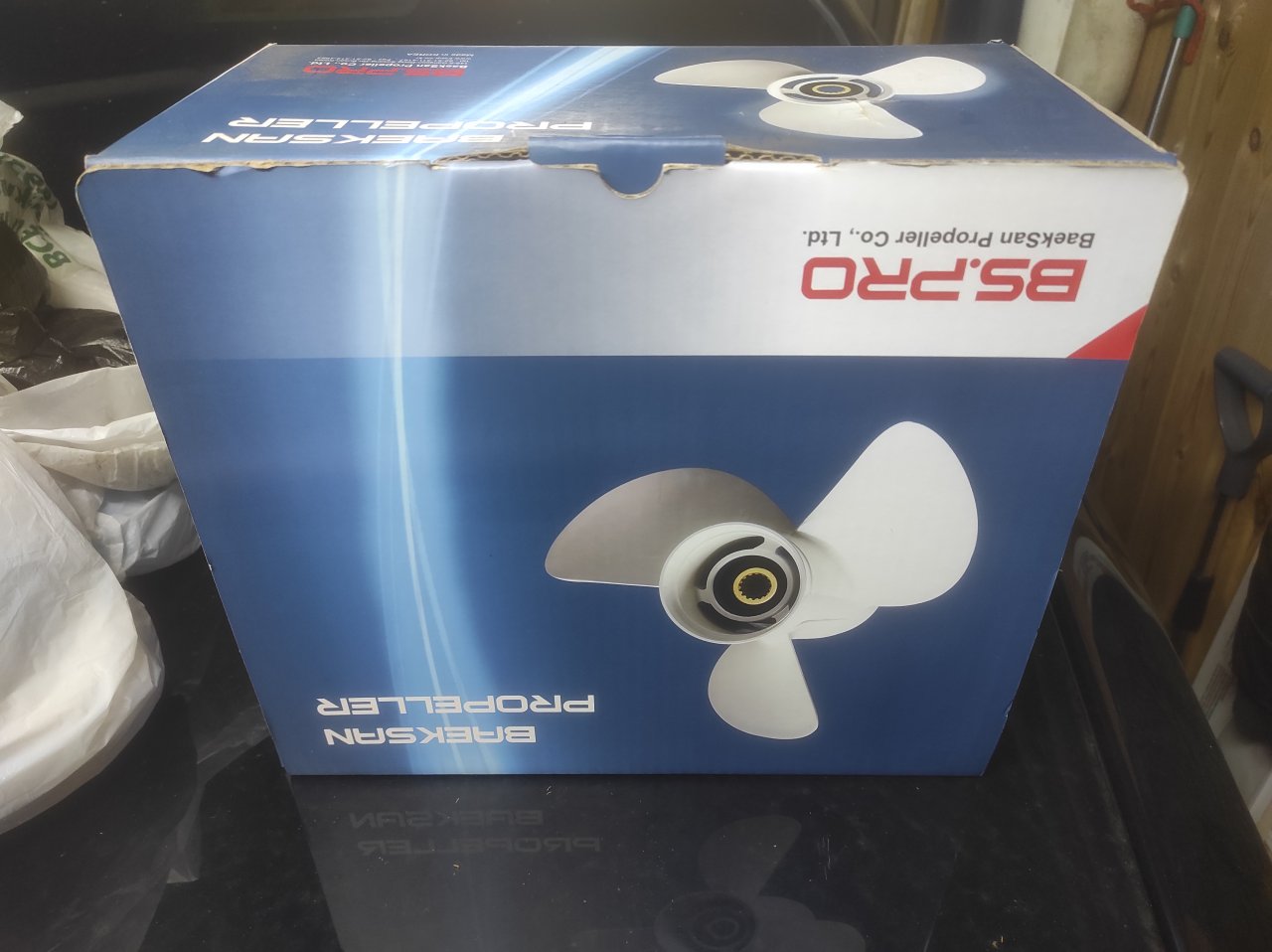 В комплекте с мотором отдам 2 винта, один б/у , второй новый на 4 лопасти