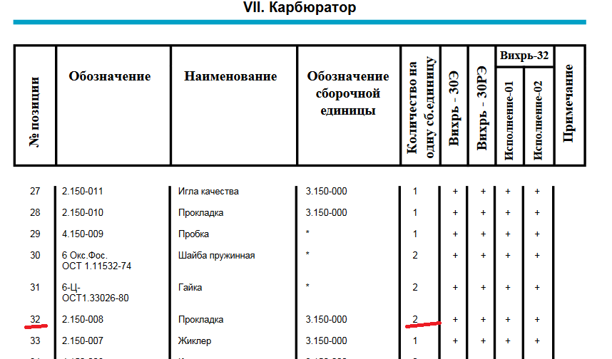 Странно, у Страшкевича в книге, стр. 265 такая-же схема, только нумерация другая (37). В каталоге указано две прокладки № 32(37). Если схема неверная, значит две прокладки уплотняют корпус жиклёра ХХ ?