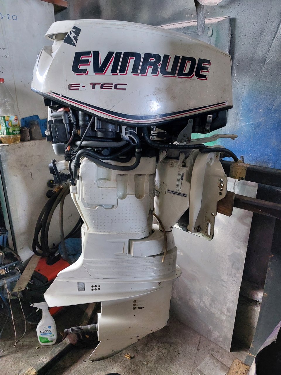 - Evinrude e-tec 50. 2011год. Нога L. 110 часов пробега. Белый. (Проблемы с пластиком, левая сторона синего цвета трещины на правой) мотор в Калининграде