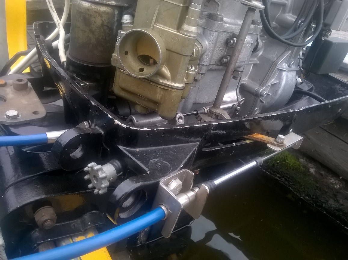 А если укоротить вынос кронштейна - отогнутую часть, чтобы трос был вплотную к поддону? Вроде должно работать, ну или придётся рычаг газа слегка к транцу довернуть.