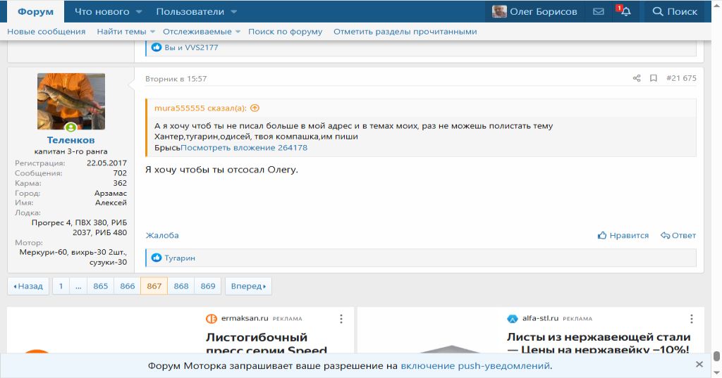 Перенес еще один пост Теленкова за № 21675 их темы "Про авто" в котором Теленков высказался цитата " Я хочу чтобы ты Олегу отсосал"
