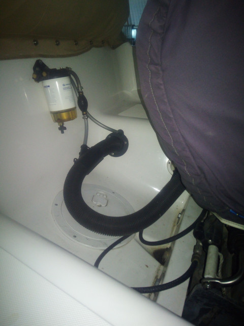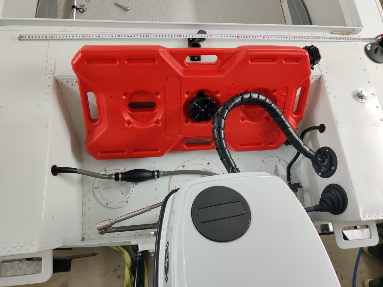 Там с сапуна нужно трубку вывести в место, где вода гарантированно в неё не зайдёт. Сосет воду на раз и кирдык приводу. В инструкции рекомендуют через поддон под колпак мотора вывести, но я подумал, что при снятии мотора с транца обязательно забуду ее вытащить и порву, поэтому вывел в рундук через проход борта с тросами, там и закрепил. Ещё датчик угла подъёма на него поставил - удобно.