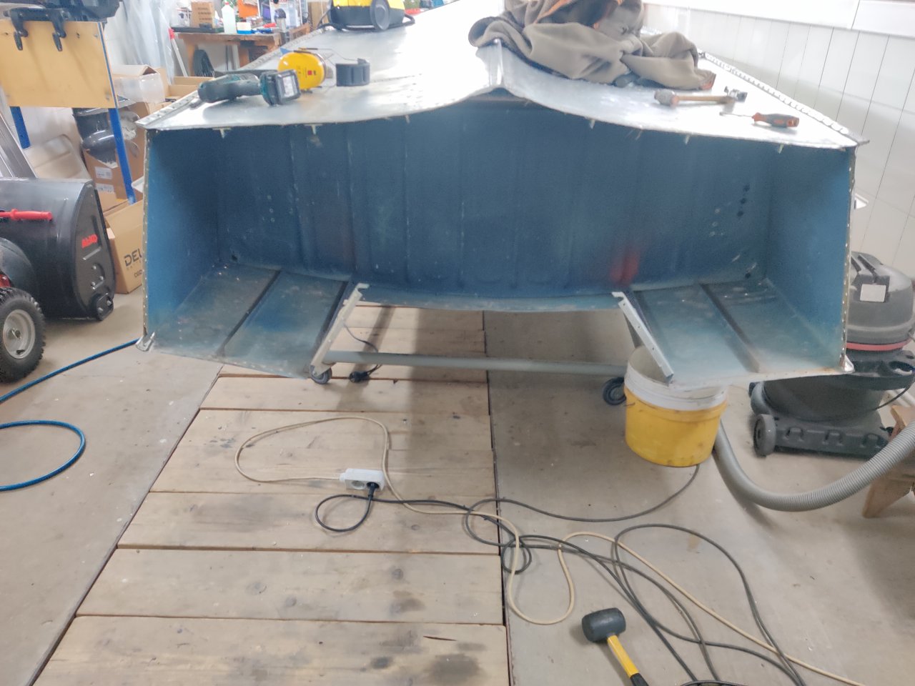 Киль накинули. Косяков с завода в районе форштевня было очень много, течь была везде, начиная с носовой утки и заканчивая стыковкой с килем. Завтра клепать.