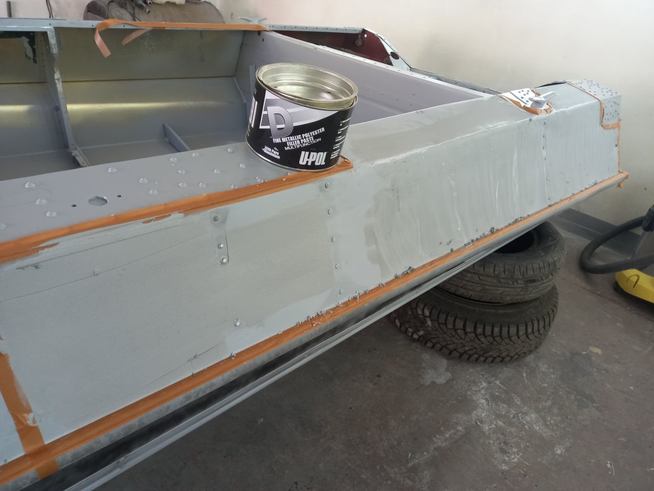 После сушки перешлифовываю грунт, шпаклюю и подклепываю где это необходимо