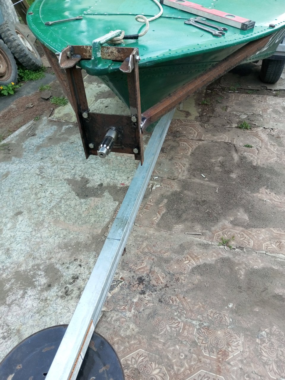 Штука универсальная и подымает и крутит.Теперь лоток обслуживать можно в один фейс,а все напряжение мышц при кантовке лодки-это неспеша покручивать ключиком на12...