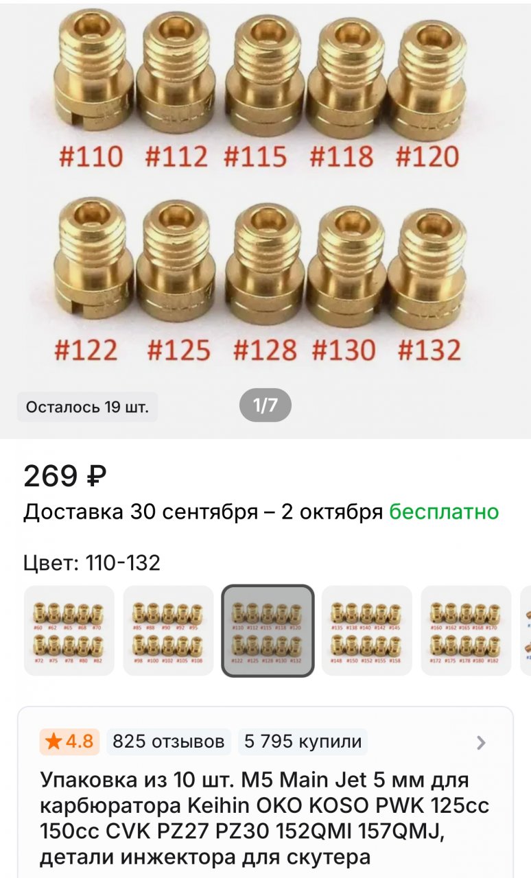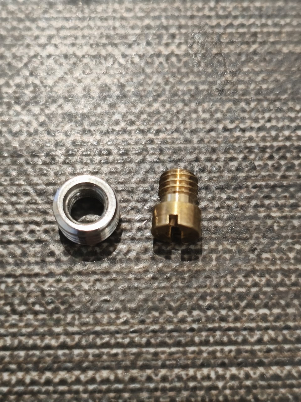 Максималка упала на 1,5-2 км/ч, расход такой же. Решил попробовать разные жиклёры. Да вот только на тохоклоновских карбах гтж с резьбой М8 - нигде не найти такие. Подходят только воздушные жиклеры от классики. Но минимум, что нашёл в продаже - это #140. Запаял, просверлил. Получилось, но корявенько. Вспомнил про набор жиклеров с резьбой М5, которые брал для сузуковского карбюратора -