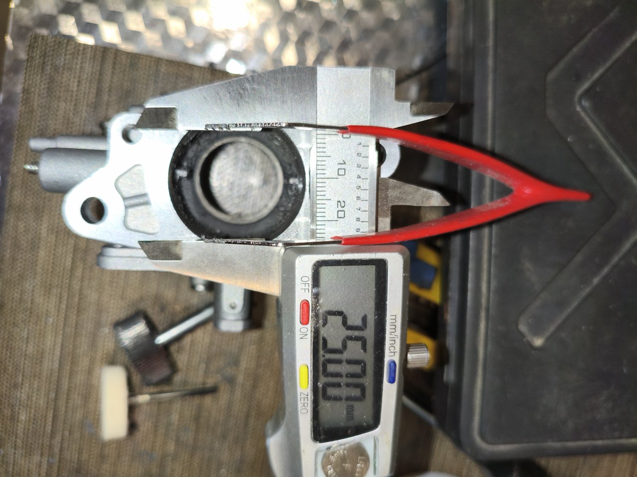 Желая поэкспериментировать с тохаклоновым карбом, развернул разверткой диффузор с 21 мм до 24 и догнал до 25 мм лепестковой насадкой на дрель, заполировал, рассверлил жиклер с 1,15 до 1,28 мм.