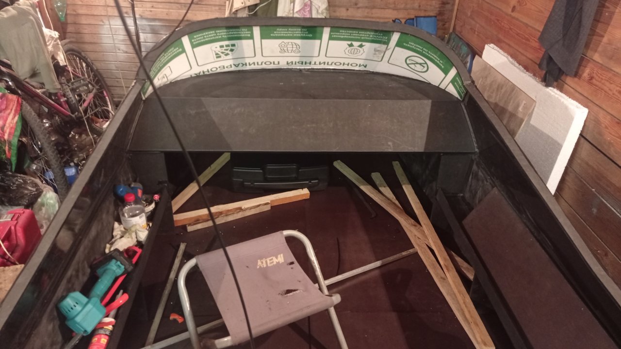 Итак сварка корпуса лодки завершена приваркой горизонтальных рёбер на верх бортов и рамки стекла.