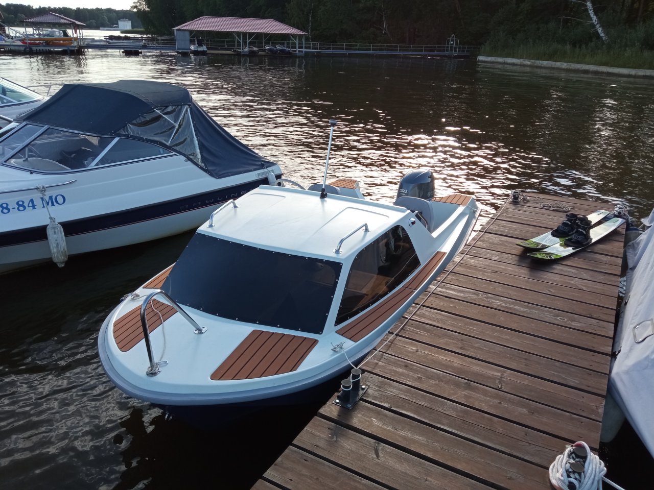 Катер ладога 2 покрашен полиуретановой краской, наклеено палубное покрытие "искусственный тик", новые сиденья, новые подушки, новый привальный брус, стекла тонированный поликарбонат, техосмотр до 2026 г. Прицеп МЗСА в комплекте. Укомплектован жилетами, якорями, кранцами и т.п. Делал для себя. Продаю так как приобрел катер большего размера. Находится в московской обл.