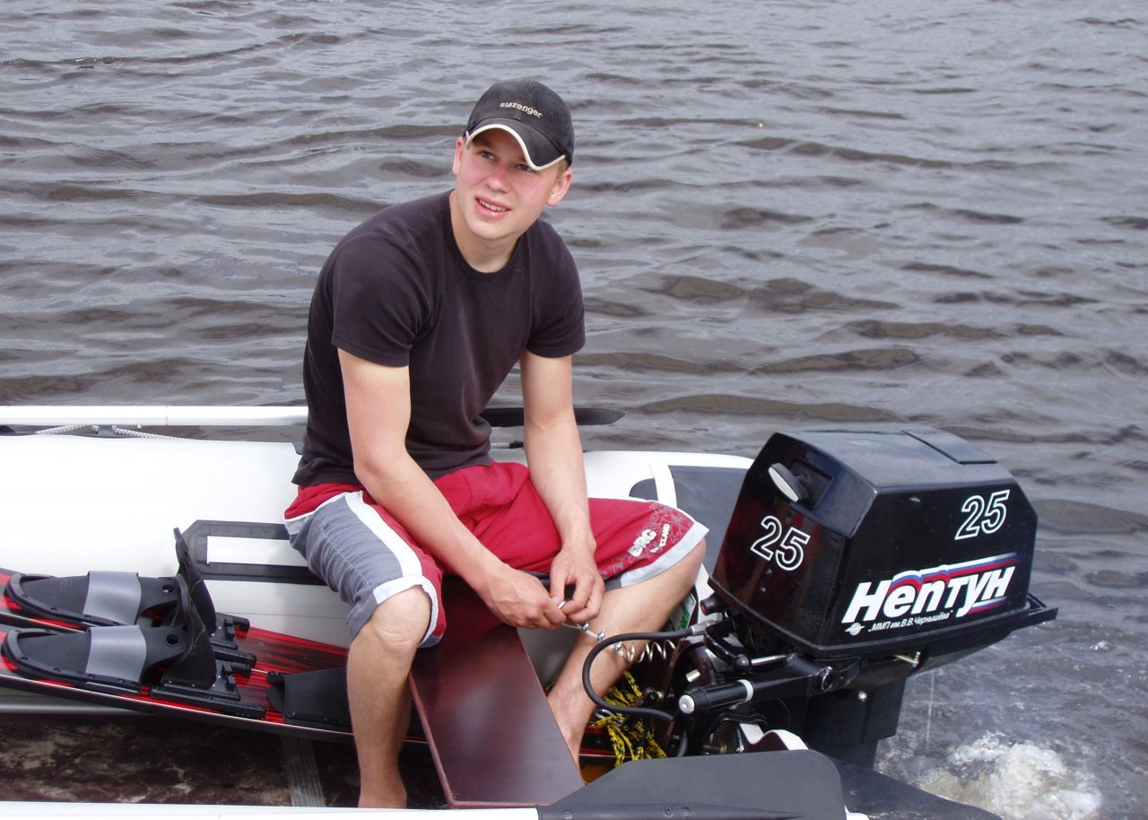 "Вихрей" имел... точно, не вспомню, сколько, около десяти, примерно. Все покупал новыми в магазине. Только, один из них доставил неудобства - через месяц после начала эксплуатации, заклинил коленвал. Отвёз по гарантии в мастерскую, оказался заводской дефект коленвала. Заменили по гарантии. Больше проблем не припомню. Правда, ради справедливости надо сказать, что после того, как отдал мотор в ремонт. Ждать не стал, а купил второй мотор. Сезон у нас на Урале короткий, жалко было лето терять. Впоследствии, наличие второго мотора привело к спарке из двух "Вихрей -30Э", уже на второй лодке. Не скажу, что моторы никогда не ломались. Катушки менял, крыльчатки помпы... Что-то больше, ничего вспомнить не могу. Моторы менял через два года, каждый по отдельности. В этом один, на следующий год другой. Покупатели на мои моторы были всегда. Зимой брал новый, делал небольшую переборку, менял прокладку ГБЦ заводскую на медную наборную, шлифовал головку, полировал винты... Летом проблем не было. Колпаки редко снимал. Осталось только одно фото.