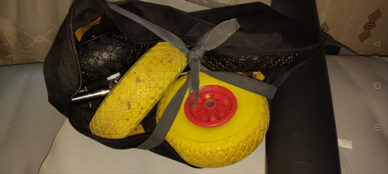 Коврик из плотного ПВХ и установленные транцевые колёса полностью из нержавеющей.