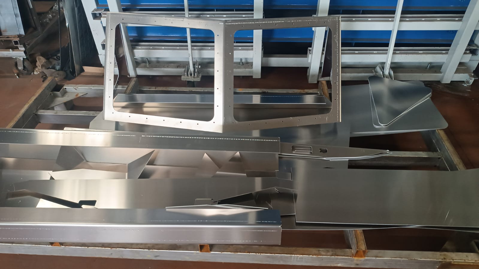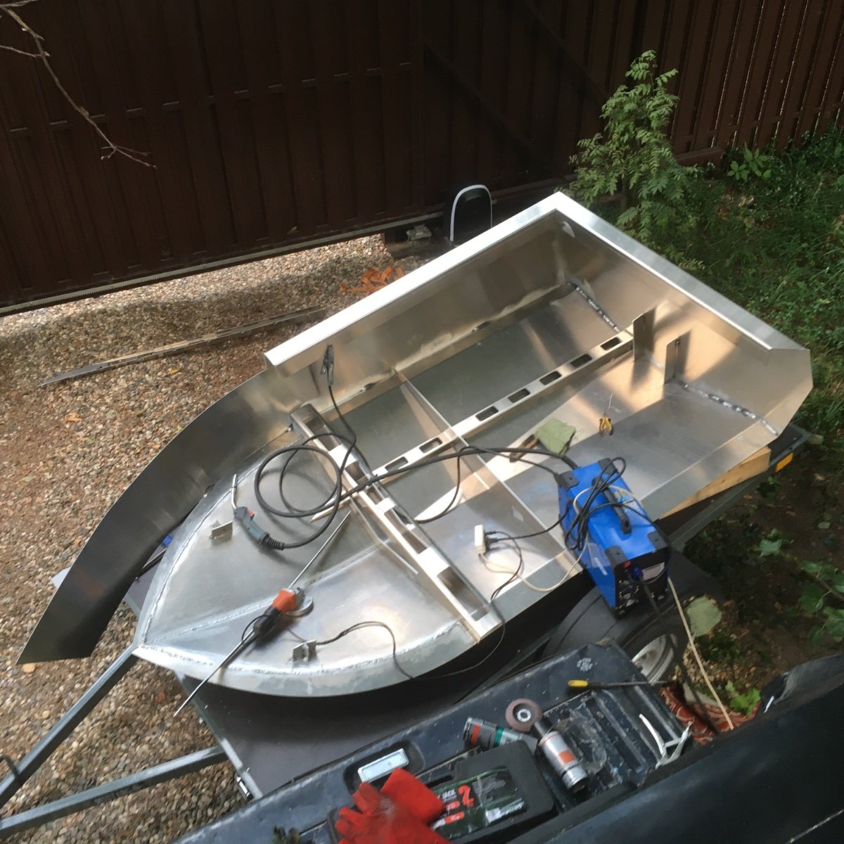 Само днище из экономических соображений исполнено из 4мм амг6м. А борта и остальные дитоли из амг3м 3мм. Листы идут 3х1.5 метра поэтому вся чертежная конструкция была скукожена с коэффициентом 0,9 чтобы раскрой влезал в этот формат. Нашел недалеко от дома чуваков с лазерной резкой и они благополучно всё вырезали и частично погнули.