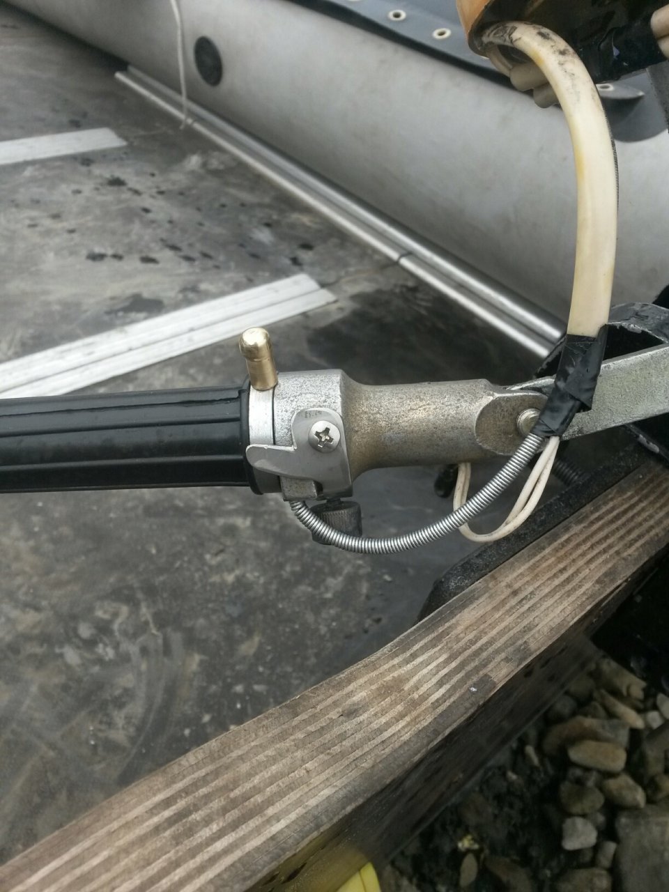 Как то так, румпель не вращается а только кольцо, снизу винт-фиксатор газа.