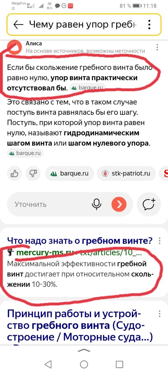 Твой нулевой процент ( 0%) проскальзывания, по факту, превращается в отрицательное проскальзывание, то есть в минус 2-5%.=а это означает, что твой винт работает в режиме "ветряка" и тормозит лодку, а не толкает её....., а винт у тебя едет быстрее своего шага...., бред?