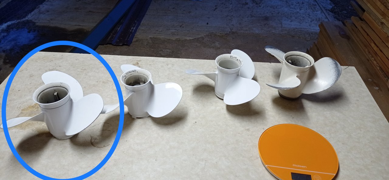 Неплохой винт получается, за счёт своей "сабли" , он мало чувствителен к высоте навески мотора на транце и едет даже лучше, чем винты "старого образца" если его "переменный шаг" перегнуть в "постоянный шаг".
