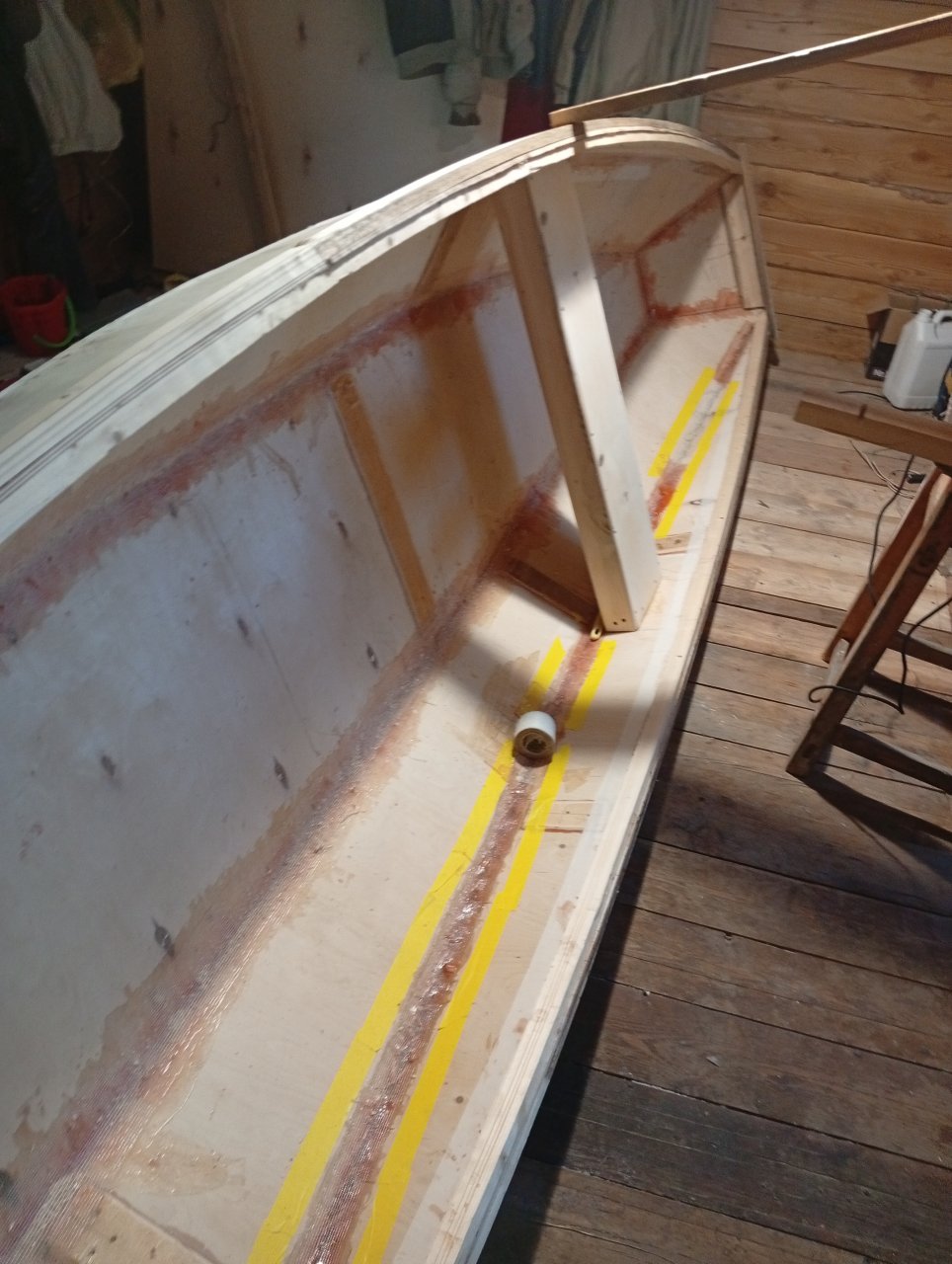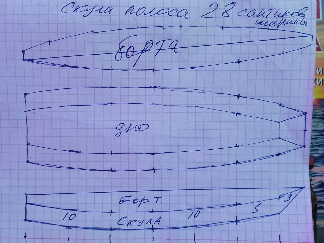 Надумал сделать лодочку из фанеры и тут встал вопрос раскройки фанеры. Но даже для Опти их надо штуки четыре лекал. А потом перенести их на фанеру. Не, я ни разу не лодкостроитель, потому-то решил попробовать сделать всё сам. От чертежей и до плавания. Лодка гребная, 3, 30 м. длиной и метр шириной. Длина два листа фанеры 1,5 м плюс 0,3 наклонный носовой транец.Проектировал на тетрадке в клеточку , одна клеточка это 10 сантиков.Итого 7 деталей корпуса по одному лекалу. Лекало с носа 3:5:10. Длина 1,80 м. Как то так, чертёжник из меня такойже . Оба борта сделал из одной детали и распилил по диагонали. Скуловая полоска шириной 28 сантиков. Размер транцев подсказала теорема Пифагора .Лодочку собирал в недостроенном дачном домике 3,8 на 3,8м. В мае собрал лодку и 7 июня отчалил в плавание по Амуру и по морю чуть-чуть . Лодка вполне себе , в шторм и брызги не попадают. Да и симпатичней той же Опти. Кстати эти обводы я назвал Корпус Одного Лекала (КОЛ). Но т.к. это не один размер лодки, то и название стало УКОЛ, т.е. Универсальный Корпус Одного Лекала. Ширина и 1,2 и даже 1, 6м. Вот как-то так получилось . Прош