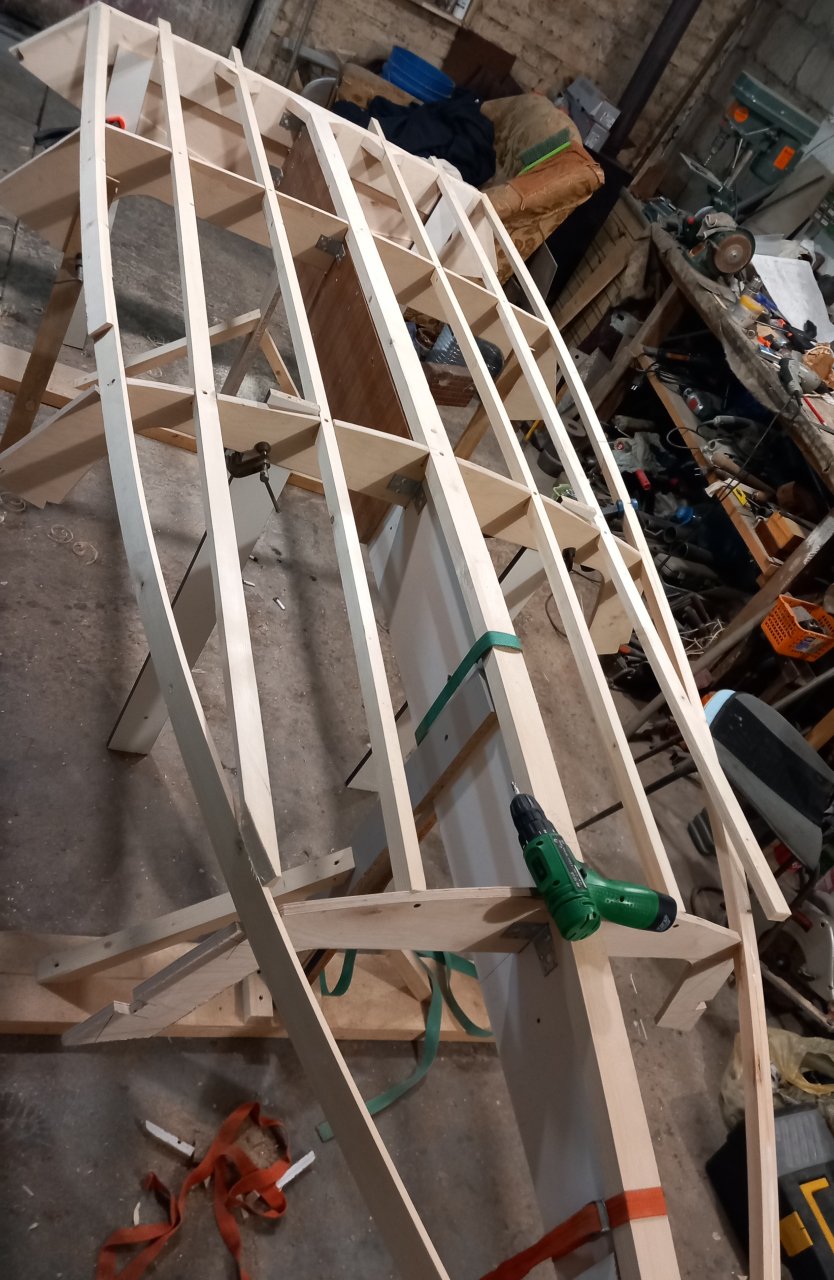 Все строго по проекту.Скажу наперед, корпус получился ледокольного класса. Т.к. по проекту обшивка заложена из фанеры 6мм. Так и сделал. Но пиндосы имеют ввиду фанеру окуме, а я обшивал нашей березовой ФСФ. Их окуме по плотности как наша хвойная.