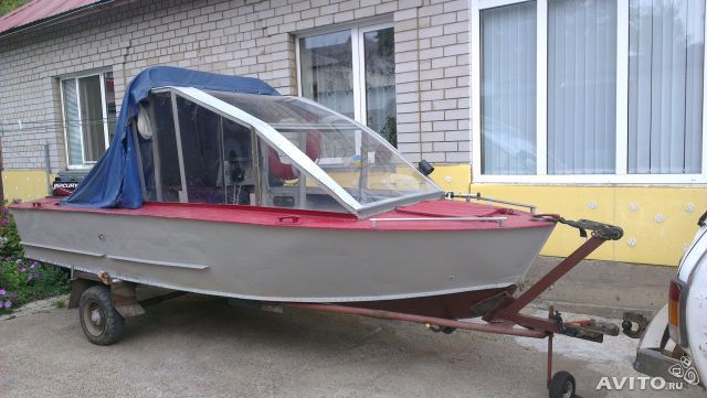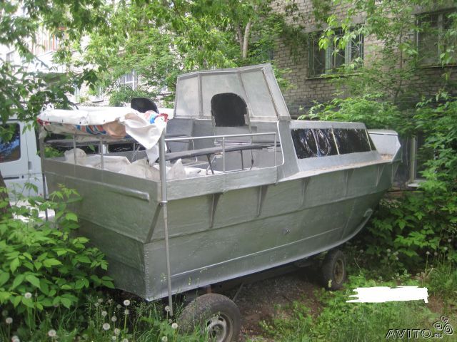 личной постройки,6-ти местный,каюта на 4 спальных места,сделан на базе 4-го прогресса,низ дюралевый,верх стекло-волокно,есть двигатель ваз-1.7 литра без навесного оборудования,не установлен,длинна 4.метра 90 сантиметров,ширина 2 метра,высота борта 90 сантиметров,цвет серый,стёкла тонированные,есть музыка,есть транец под подвесной мотор,есть небольшой полог,требуется доделка,нет рулевого управления,редуктора,винтов,с учёта снят,документы есть, обмен равноценный или с вашей доплатой