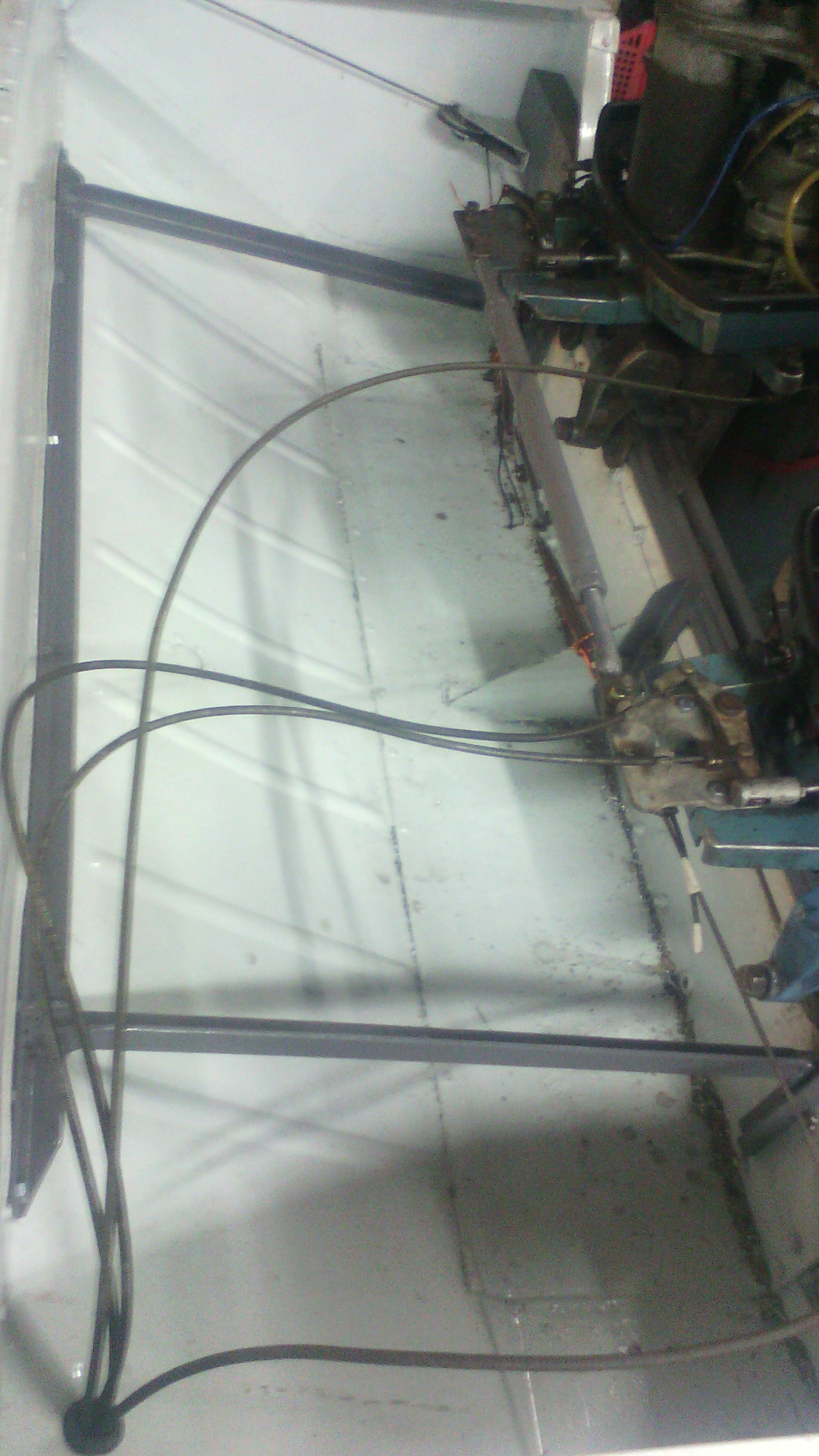 Всё из кв.трубы. Транец поднял на 50мм. Потом ещё на 7-8мм дощечкой. Усиление -от верха транца на переборку.Моторы расположил как можно шире, как получилось. Второй газ тросик за ту же родную проговскую газульку, одновременно оба газуют.