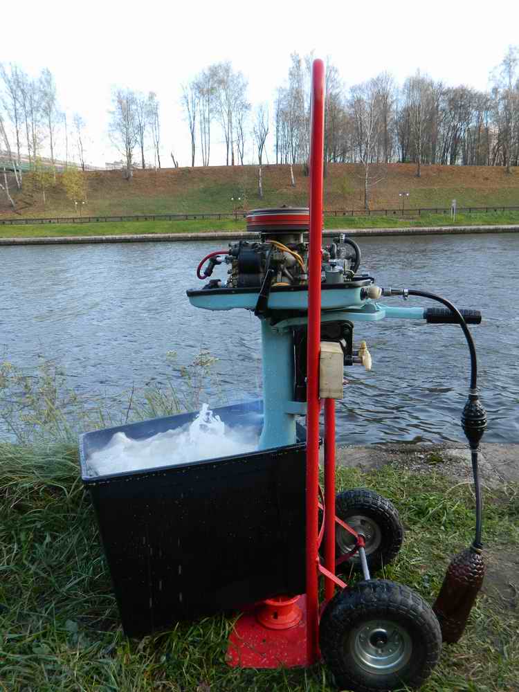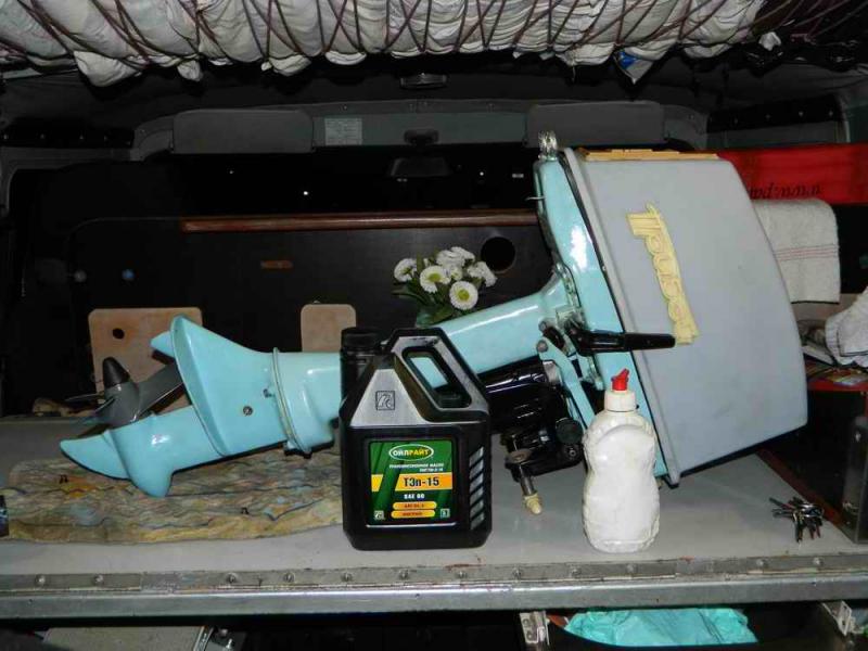 Поставил винт от "Хонды" BF5 (см. соседнюю ветку про "ямаховские" винты), ручку и фиксатор от "Ветерка", все это встает почти без переделок