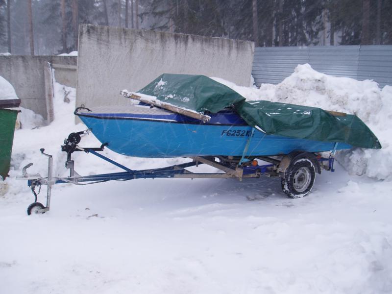 Првивет Всем!!!Наконец то сеня гонял за свой лодкой.нестерпел и рванул в г.Раменское.лодку купил в декабре 2012 года,посмотрел всё и договорился забрать её в феврале,так как снегом завалило гараж где стояла лодка да и зимой как то неохота тащить её.Метель конечно сеня здорово метёт,но мне не помеха это было,120 км\час а машина идёт как одно целое с прицепом(эх жара).Купил лодку с Курганским прицепом самасвального типа(состояние нового да к тому же один владелец).лодка по комплектации:новое стекло,рулевая с тросом,встроенный бак на 60 литров с прибором на панели,водооткачивающая помпа,новые слани,борта проклеены шумкой от АУДИ А6,провода аккамуляторные,аккамулятор(новый),2 весла.Тента правда нет.Вот небольшой фотоотчёт,потом побольше фоток кину а то на улице невозможно стоять ветер злющий.