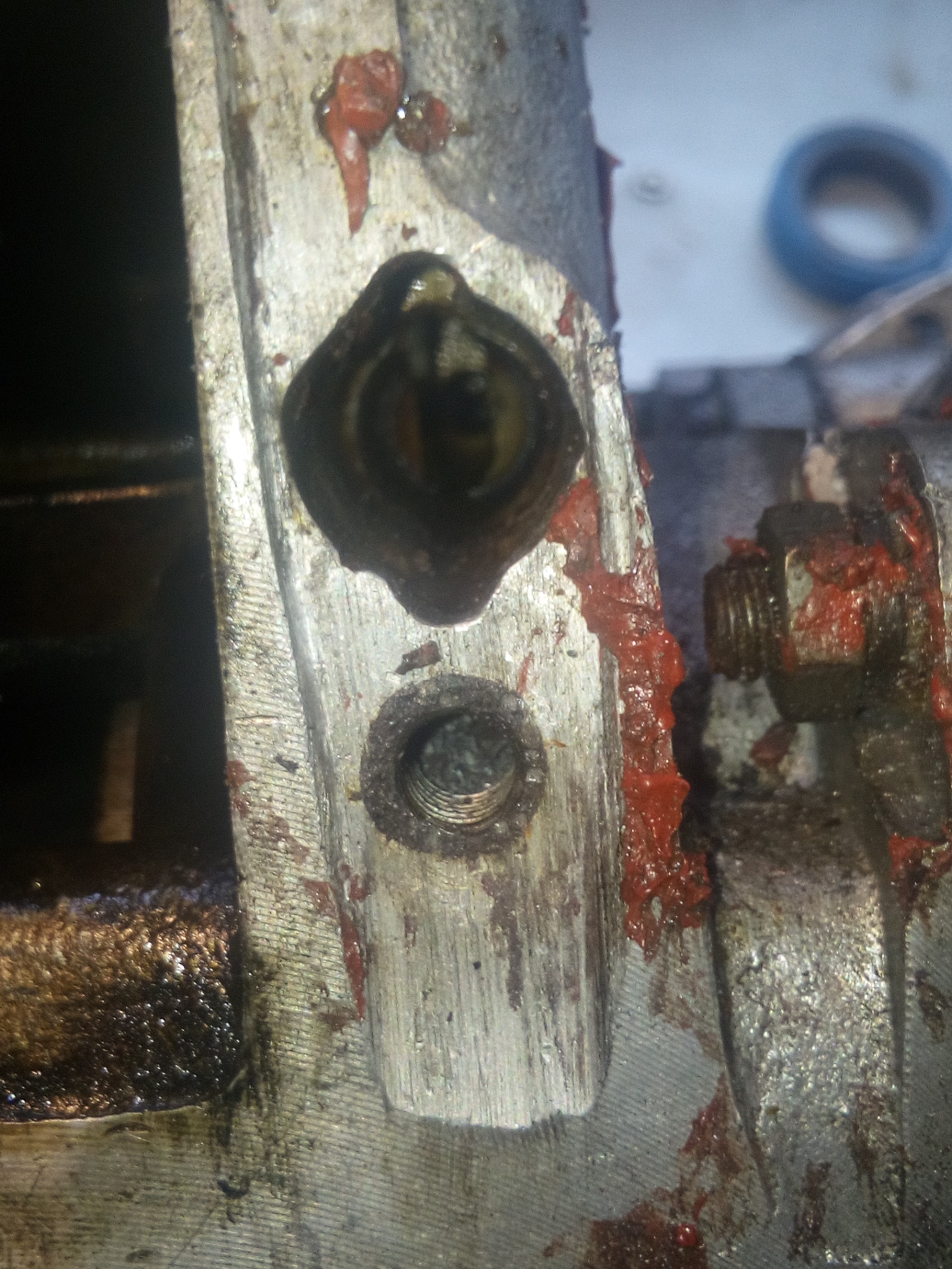 Конечно подскажу.... В нижней крышке картера есть отверстие для входа воды от помпы, а далее есть выходное отверстие которое стыкуется с каналом в блоке цилиндров. Так вот сбоку в крышке картера просверлено глухое отверстие и нарезана резьба М8 под штуцер. А затем внутри этого отверстия сверлом диам. 3мм наискосок просверлен канал, который выходит в выходное отверстие крышки картера. Далее на штуцер одета трубка резиновая, которая соединяется с другим штуцером вкрученным в поддон. С него и выходит вода, которую и наблюдаем. Давление весьма сильное, даже слышно при работе на нейтрали как струя с шумом входит в воду. Отверстие в штуцере поддона примерно 1.5 мм, точно уже не помню.