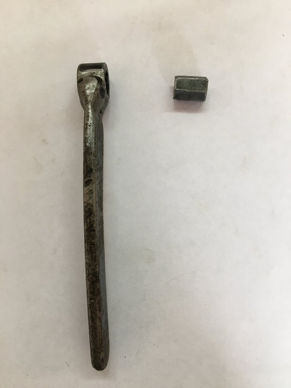 Далее привариваем к обрезанной части головки полосу, у меня немного слабовата получилась, короткую делал специально чтобы ключ не занимал много места, при закручивании - откручивании одеваю кусок трубы.