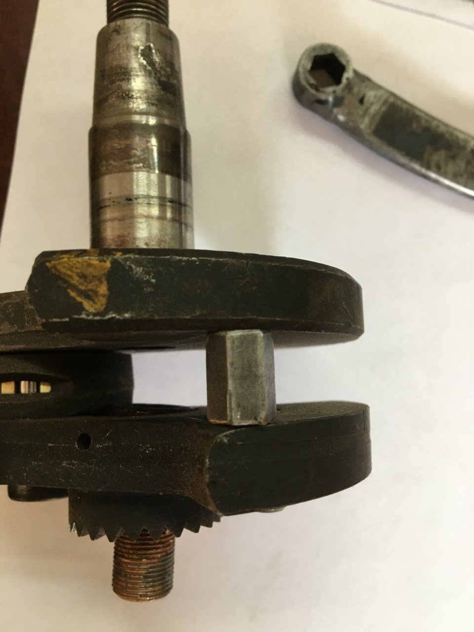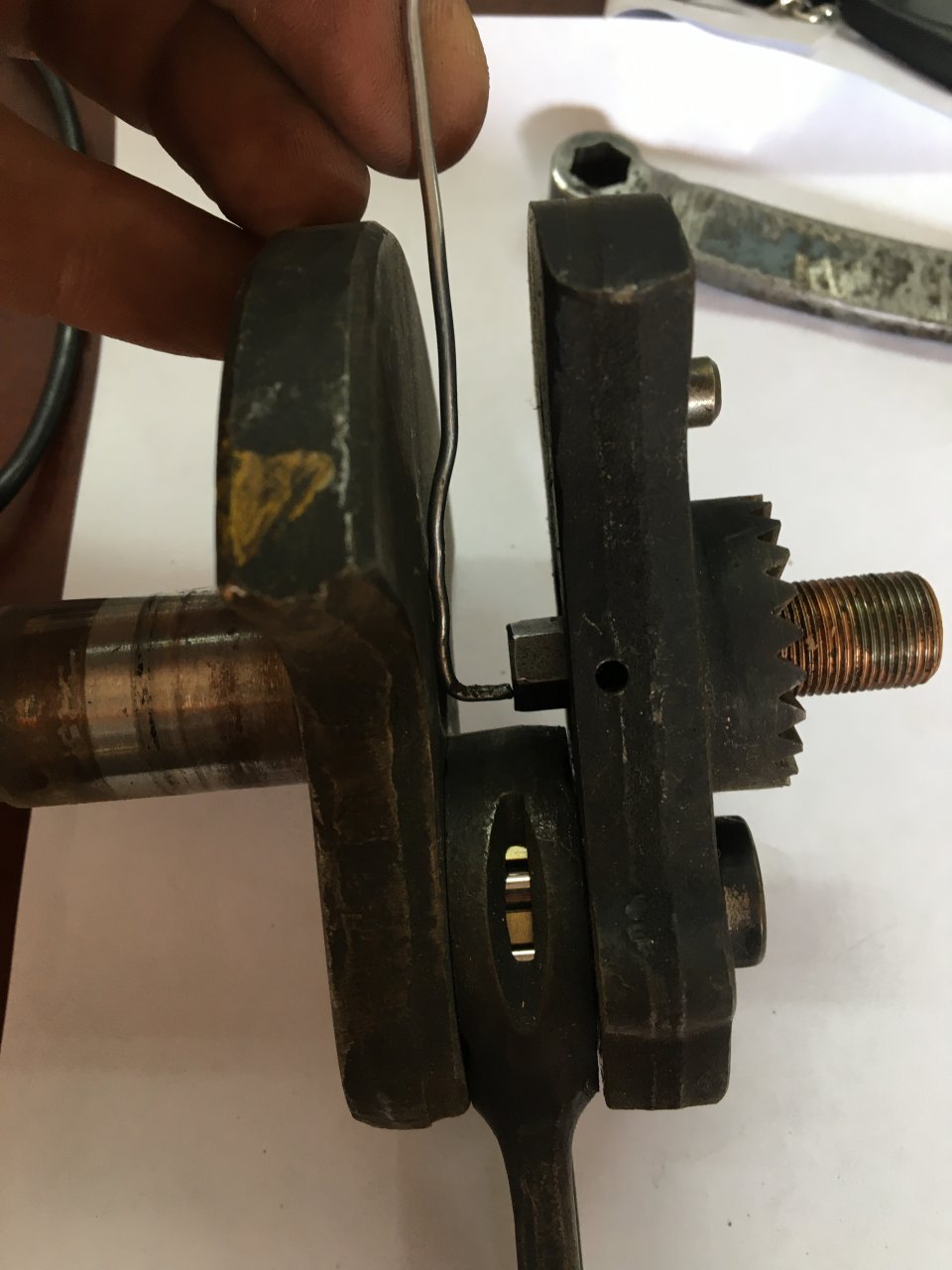 Работа ключем, шестигранник вставляем в ключ, вводим между щек коленвала, проволочным крючком проталкиваем шестигранник в болт, расклиниваем ключ сверху пластинкой подходящей толщины чтобы ключ не съезжал с шестигранника.