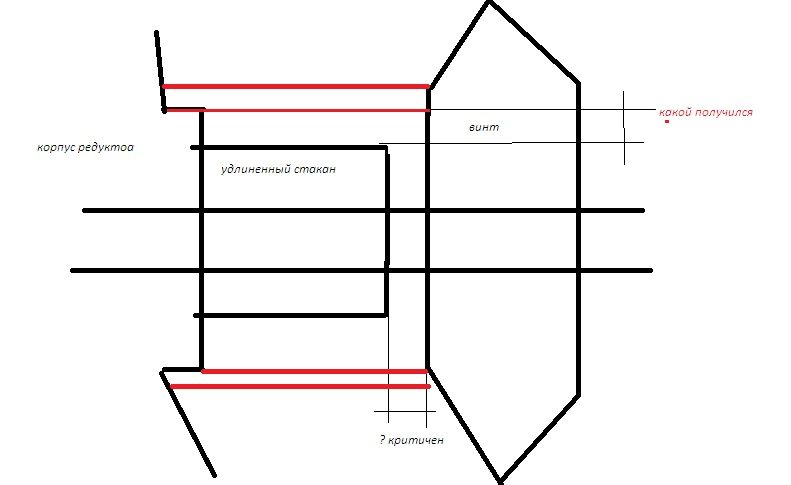 Винт пока не купил, полностью длину вала будет сложно прикинуть. Я могу прикинуть размер до упорного стопора. Там будет ясно сколько делать по длине вал.