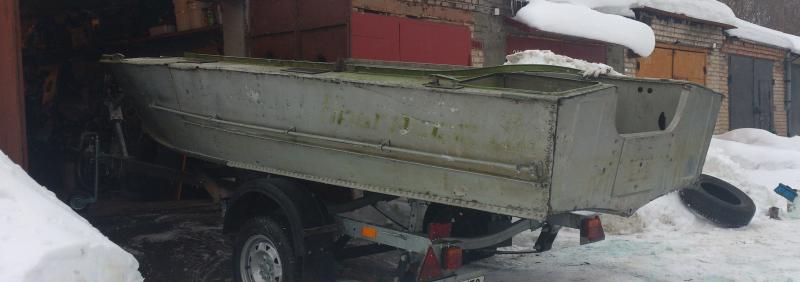 Доброго всем дня. Принимайте и меня в ряды владельцев этой уникальной лодки. Купил зимой корпус лодки, думал перепродам по сезону, но оставил для себя и теперь вкладываешь в него не только душу... Захотел сделать 2х консольный вариант, обрезал нос вместе с люком. Корпус был не совсем в идеале, была кем то оторвана килевая накладка по днищу, пришлось менять все заклёпки по килю. Бала заводская краска, смывал смывкой боди и мет. щёткой. По поводу, чем красить, сломал всю голову. Хотелось не просто покрасить, но и добиться гидроизоляции. Не судите строго, люминька у меня первая, может, что то и не так. Нашёл такую штуку наз. полимочевина( может кто то и слышал) , но она наносится с помощью пульвера и спец. машины. Кто ищет тот всегда найдёт. Нашёл питерскую фирму Химикс лимитед, они производят полимочевину и ручного нанесения, заказал у них вместе с грунтом.