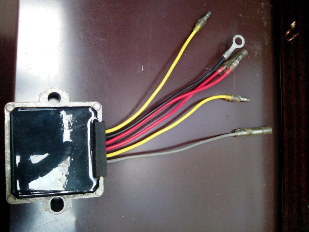 Mercury ME 40 M Sea Pro изначально румпельный, переделан под дистанцию. Когда катер с мотором мне достались в придачу получил регулятор напряжения. Предыдущий хозяин сказал, что поставить его там некуда. На 3 года я про него благополучно забыл и вот настал момент рестайла катера и появилось желание иметь зарядку аккумулятора. Достал этот регулятор, нашел место где он должен быть установлен, но из 6 проводов выходящих из него нашел куда пристроить только 2 желтых и землю.