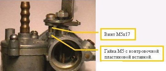 Попробуйте сделать упор для регулировки положения дроссельной заслонки. Я сделал немного по другому, поставил обыкновенную гайку и распорную пружинку.....Свечи погорячее? Горячей А-11 только А-10, но они уже не выпускаются, хотя возможно есть и импортные аналоги.