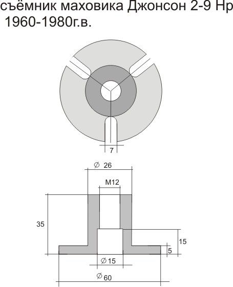 Съемник маховика для Джонсон 2-9 сил.На другую мощность подойдет или нет пока не знаю.Маховик на старичках загнуть оч.просто.Найти замену проблема.