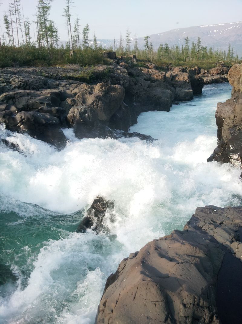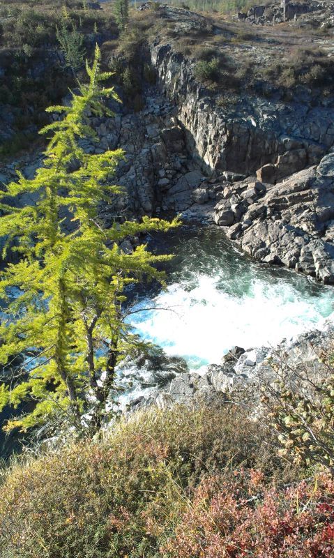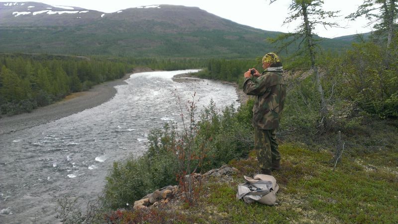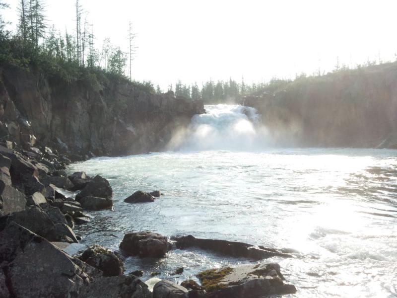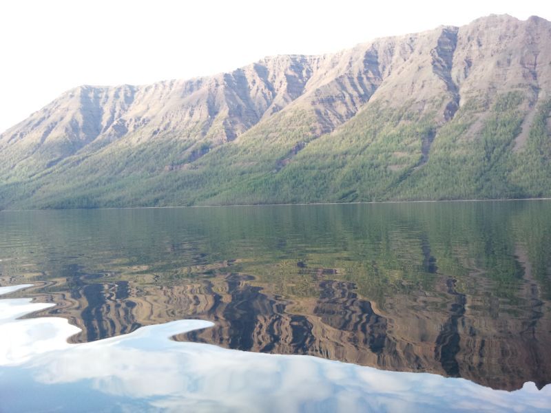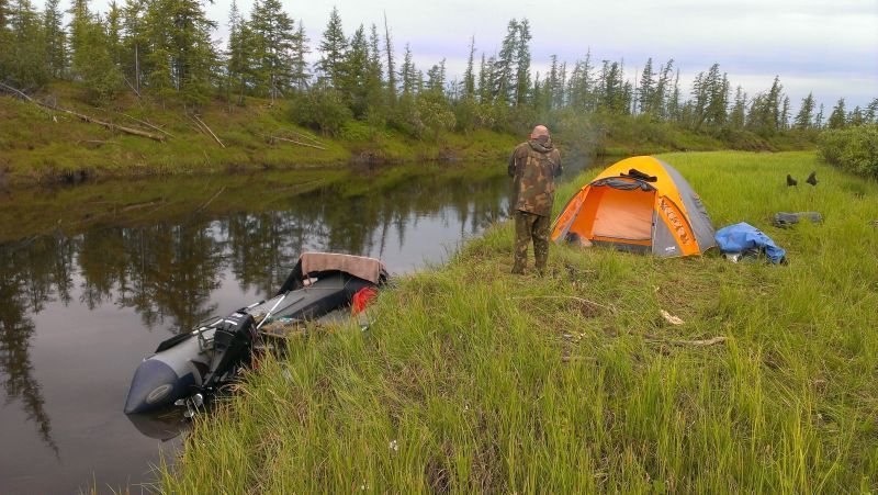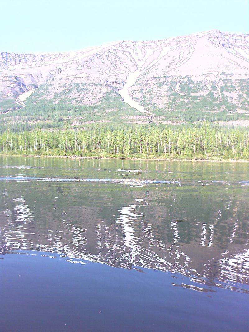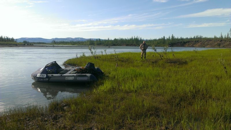 Ну, слили трансмиссионку, сняли винт и заднюю крышку редуктора, вынули вал, увидели болтающуюся спираль-кольцо и зуб от шестерни. Зуб выкинули, кольцо поставили на место, зафиксировав палец, смонтировали обратно редуктор, залили новую трансмиссионку, и передача стала нормально включаться. Но осталось чувство неполноценности мотора. Идти с ним через пороги Аяна, что ниже устья Калтамы, и далее в район Нерала-Ягтали показалось несерьёзным. Поэтому дошли до Волочанки, взяли часть оплаченного бензина, и вернулись обратно через Авамо-Тагенарский волок. И так себе на этом моторе без одного зуба на шестерне прошли 530 км обратного пути, да еще потом сгоняли на Микчангду. Там из-за низкой воды и неимоверного течения пожгли бензин и 38 км не дошли до горы Орлиная, откуда начинают сплав байдарочники.