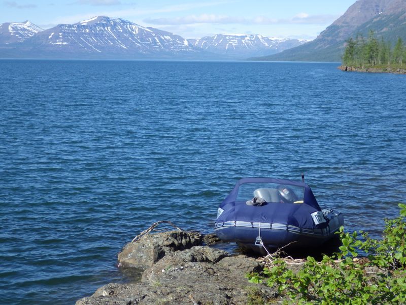 От прохождения "Большого норильского круга" с траверсом Путоран через озеро Аян от Волочанки до Светлогорска отказались, когда на одном из озер Авамо-Тагенарского волока у считающегося супернадежным фирменного инжекторного мотора SUZUKI DF 20 AS, только что из фирменного техобслуживания после обкатки, перестала включаться передняя передача. Передачу после консультаций по спутниковому телефону с Андреем из сервиса таки наладили. Оказалось, что у раздаточной шестерни в редукторе отлетел один зуб. Этот зуб болтался-болтался в редукторе, и после наклонов мотора при переносках он зацепил и сорвал спираль-кольцо, фиксирующее палец, тот сдвинулся, отчего и перестала включаться передача.