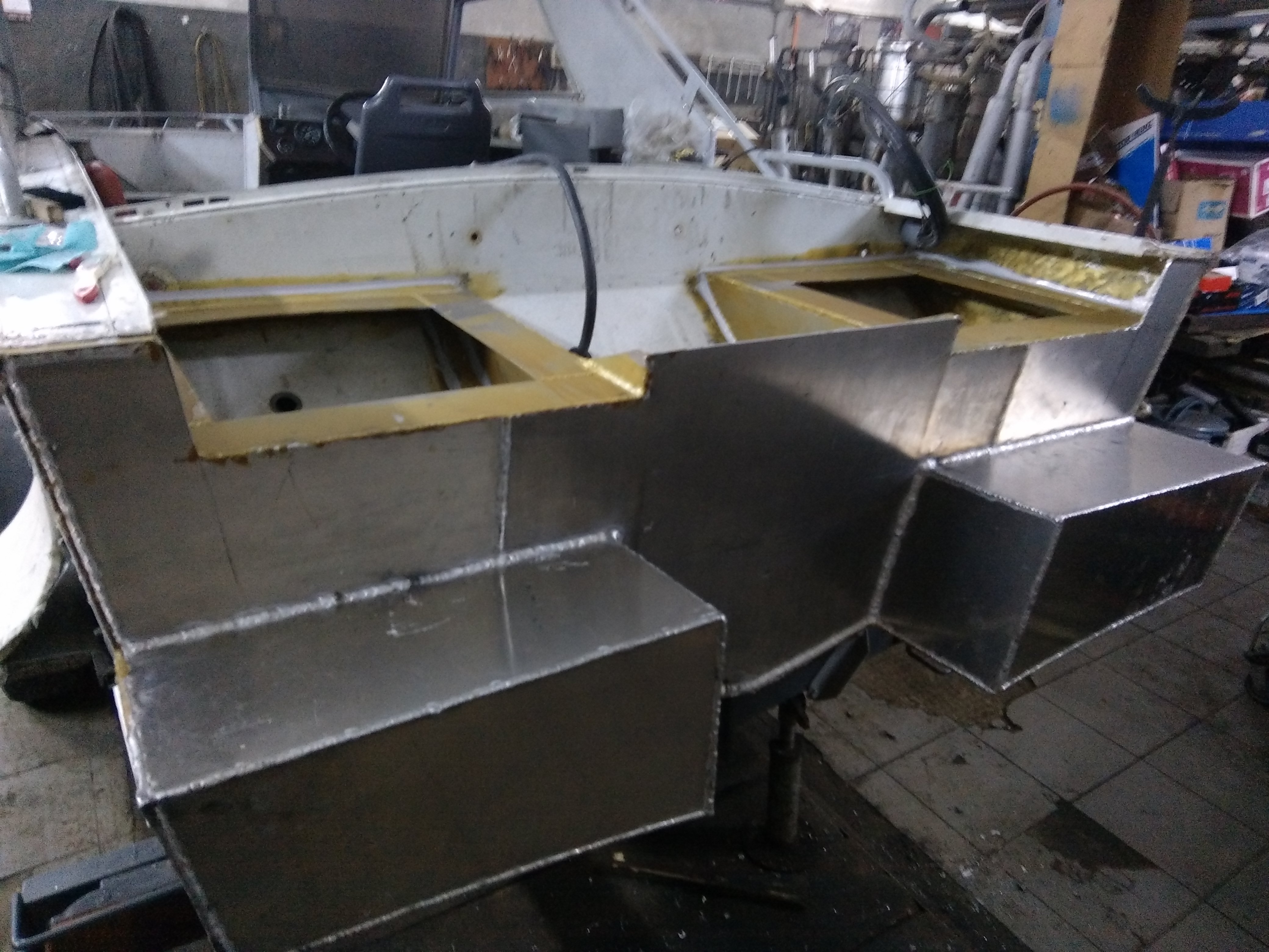 С начала не понял про какие крылышки вопрос. Потом понял. Это ложементы под баллоны, без них ни как не получается. Делали на скорую руку временно, но как всегда временное постоянно. Потом красиво сделаем. Баки маленькие потому что они по сути не нужны, есть баллоны. Решили их сделать так как с низу они являются транцевыми плитами, с верху ступенькой, с боку ребром жесткости траца (какая разница где оно, снаружи или внутри?) Ну и остается одну стенку приварить. Этим мы пытались как раз затраты снизить, хотели чтобы одна деталь решала сразу несколько задач.